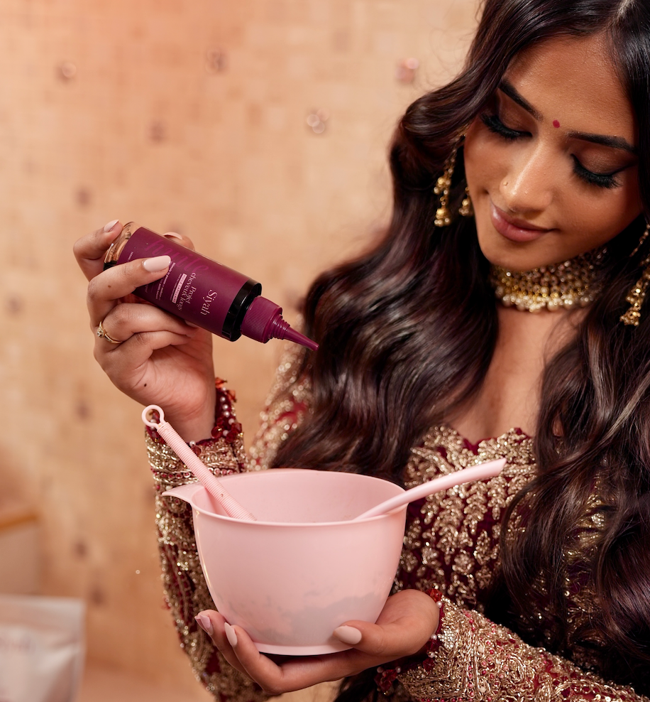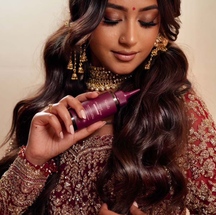 On raconte qu'au coeur des palais indiens parfumés de jasmin, vivait une Reine à la chevelure si longue et éclatante qu'elle semblait capturer la lumière. Son secret : un rituel sacré mêlant poudres ayurvédiques, huiles précieuses et infusions parfumées, transmis de générations en générations.