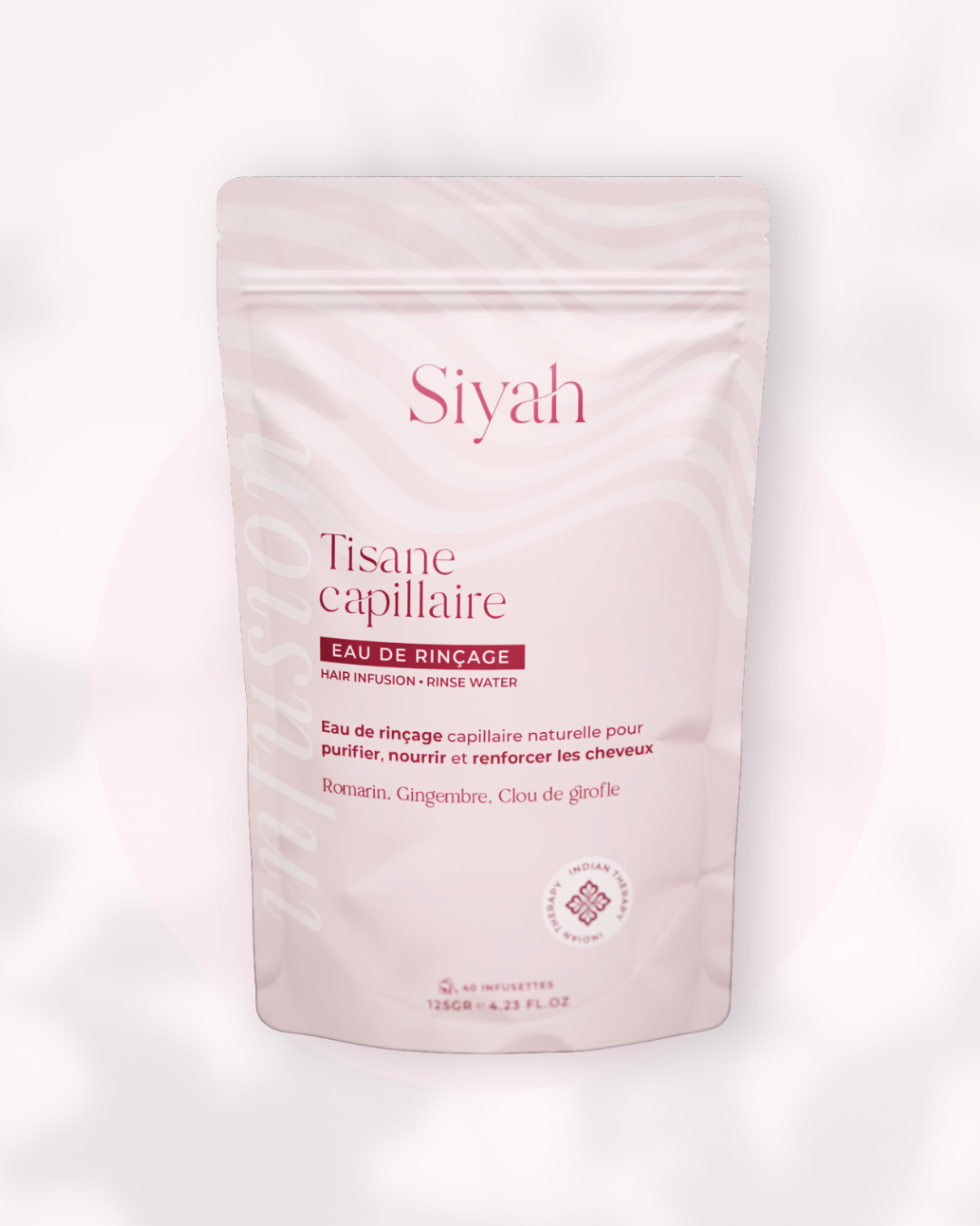 La Tisane Capillaire est une infusion aux herbes et épices indiennes, utilisée en eau de rinçage pour tonifier le cuir chevelu, renforcer les racines et apporter éclat et légèreté aux cheveux. Ce geste final scelle l’hydratation et prolonge les bienfaits des soins Siyah.